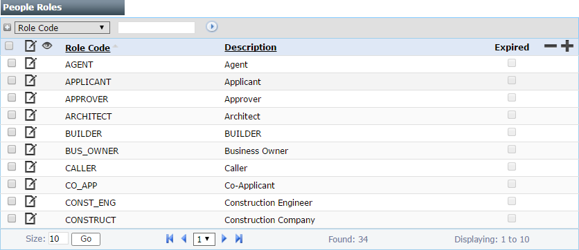 People roles are the categories used to organize and track the people involved or interested in a case. You can create roles for all kinds of people involved in a case, such as the applicant, owner, primary contact, etc. From the People Roles panel, you can add a new role or view, edit, or remove existing roles.