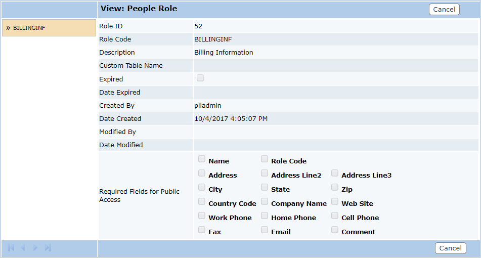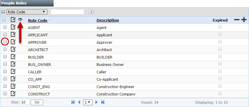 - On the People Roles panel, select the check box next to the role you wish to view and click View record near the top of the panel.
