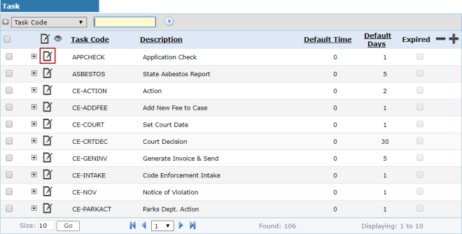 - On the Task Setup panel, click Edit record next to the task you want to edit.