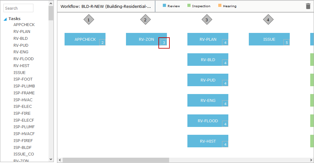 IMPORTANT: When using the workflow diagram to update workflows, the changes you make are not immediately reflected in the workflow setup grid. However, a warning icon will appear next to the task group that has been modified.