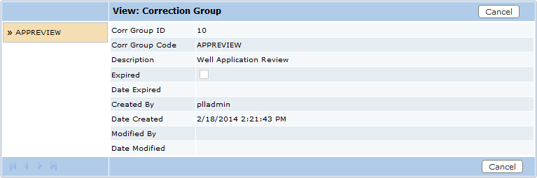 - The View: Correction Group panel displays all the basic information about the checklist.
