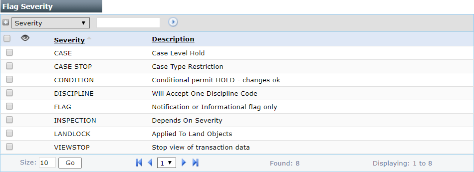 IMPORTANT: Flag severities are hard coded into the system and cannot be altered. Users cannot add, edit, or delete flag severities.