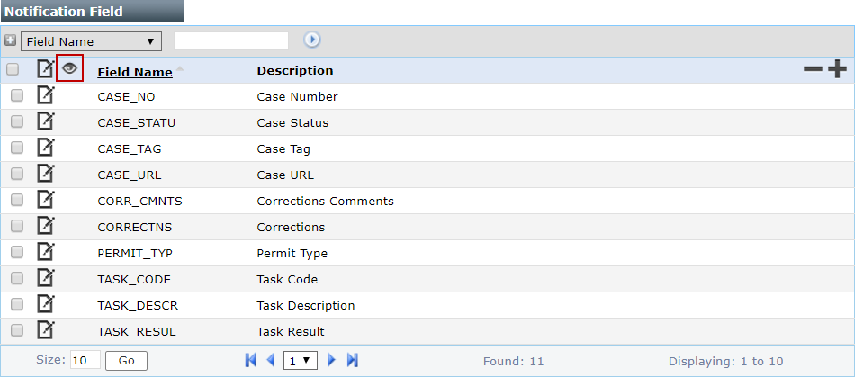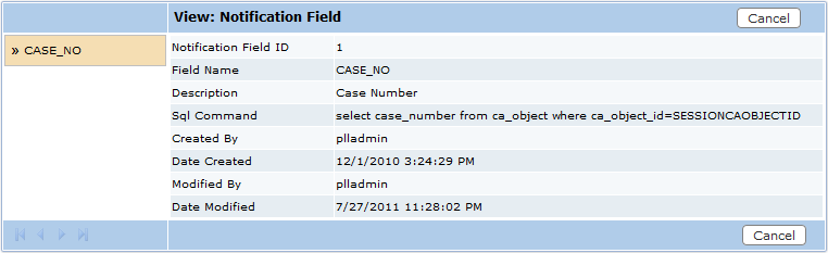 - The View: Notification Field panel displays all the basic information about the notification field.