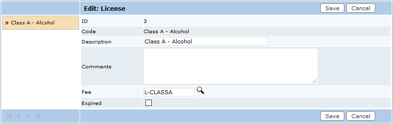 NOTE: The Edit: License panel contains the same information as the Add: License panel, with the addition of the Expired check box.
