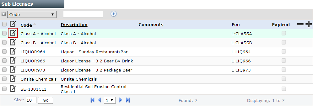 - On the Sub Licenses panel, click Edit record next to the sub license you want to edit.