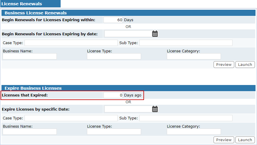 This will automatically expire any license with an expiration date within the time frame indicated by the number of days you specified in the Days ago field.