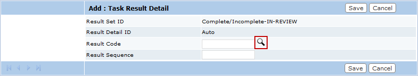 - On the Add : Task Result Detail panel, click Lookup to open a selection window.