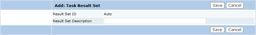- On the Add: Task Result Set panel, enter a brief explanation of the set in the Result Set Description field.
