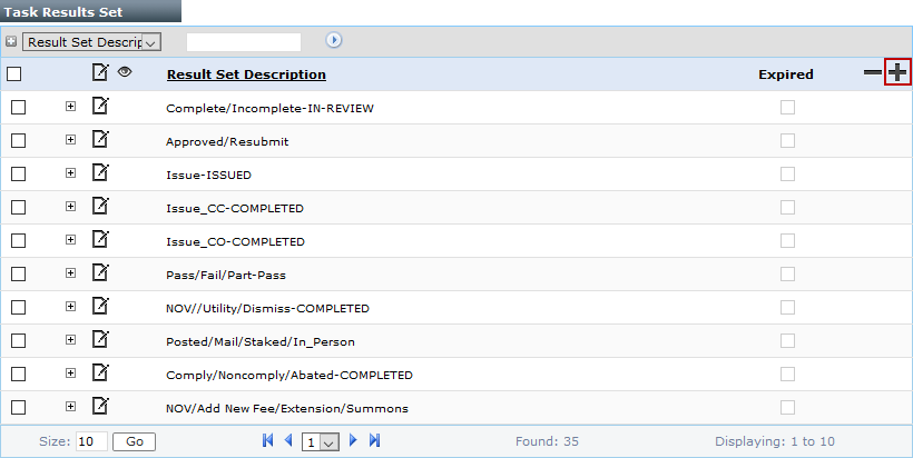 - On the Task Result Set panel, click Add record near the upper, right-hand corner.