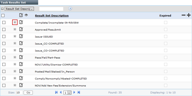 - On the Task Results Set panel, click the plus icon next to an existing result set.