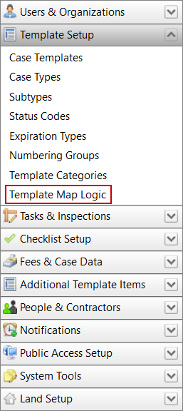 - Click Template Setup on the PLL Admin menu panel and select Template Map Logic.