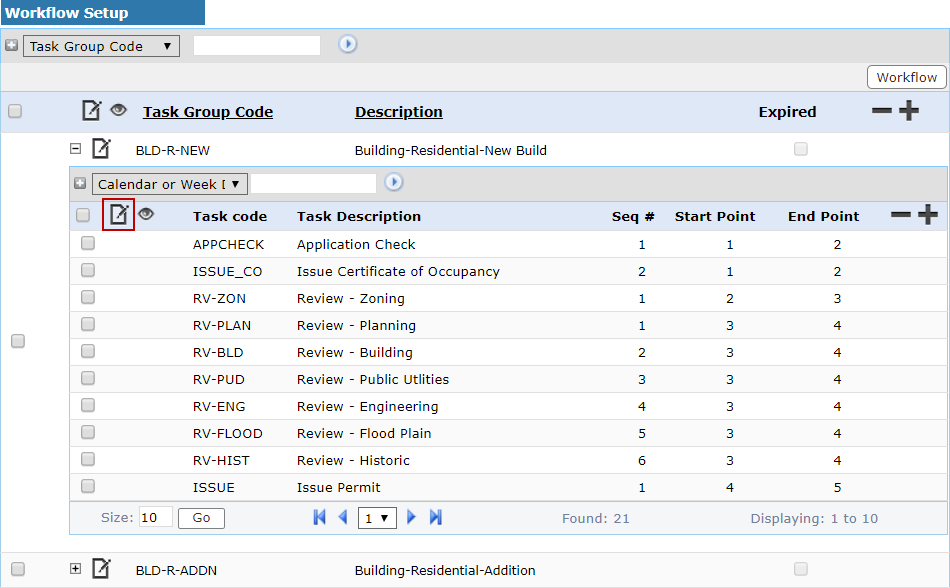 - On the Workflow Setup panel, click the plus icon next to the task group you wish to inspect.