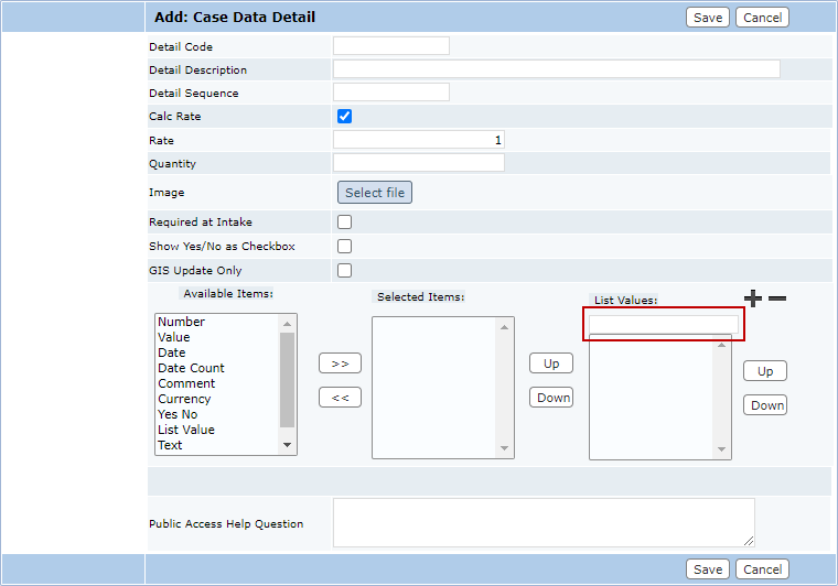 - In the Public Access Help Question field, provide any information about this data detail that might be useful or helpful to Public Access users.