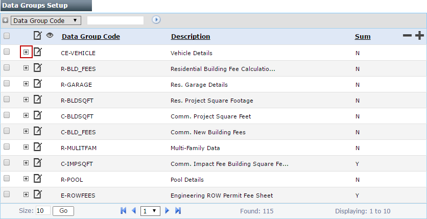 - On the Data Groups Setup panel, click the plus icon next to the data group of your choice.