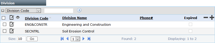 A division is a subsection of a department and has a specific task, function, or responsibility. From the Division panel, you can add new divisions or view, edit, or remove existing divisions.