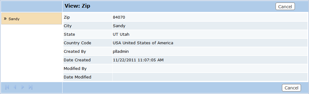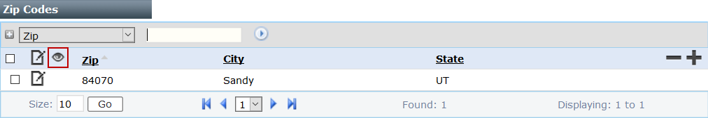 - On the Zip Codes panel, select the check box next to the zip code you wish to inspect, and then click View record at the top of the panel.