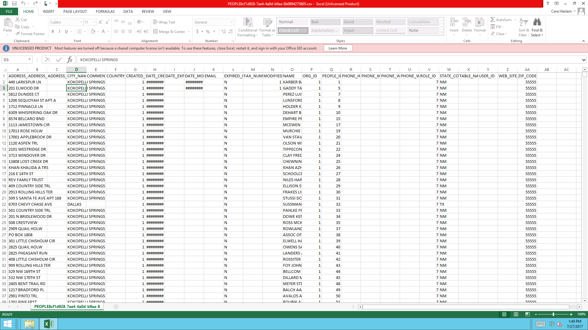 - The Table Name will automatically populate with the table associated to the panel from which you clicked the Export Data icon, but can be changed by selecting a different table from the drop-down list.