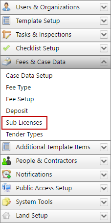 - Click Fees & Case Data on the PLL Admin menu panel and select Sub Licenses.