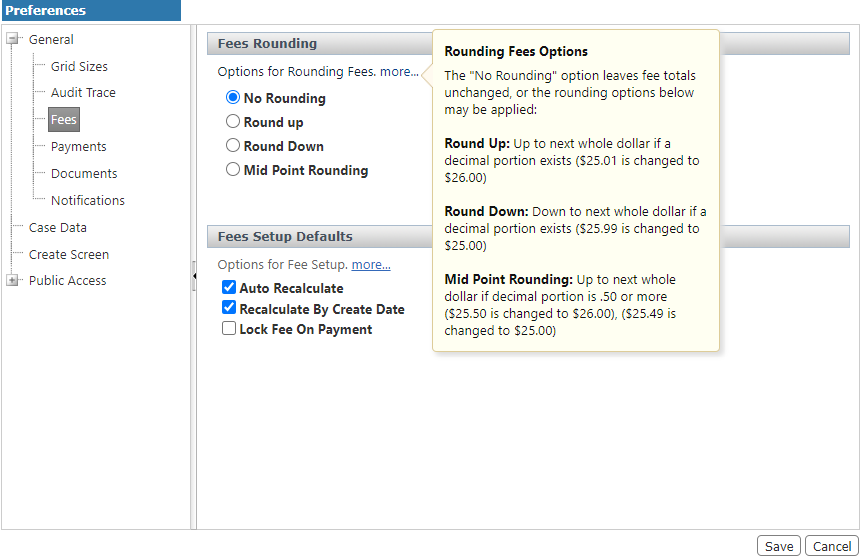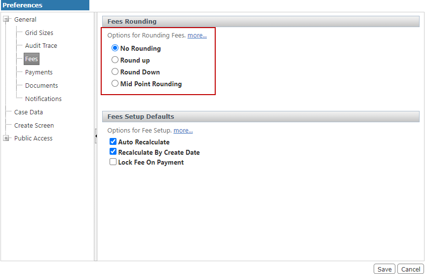 - Under Fees Rounding, select the option button next to the rounding option you prefer.