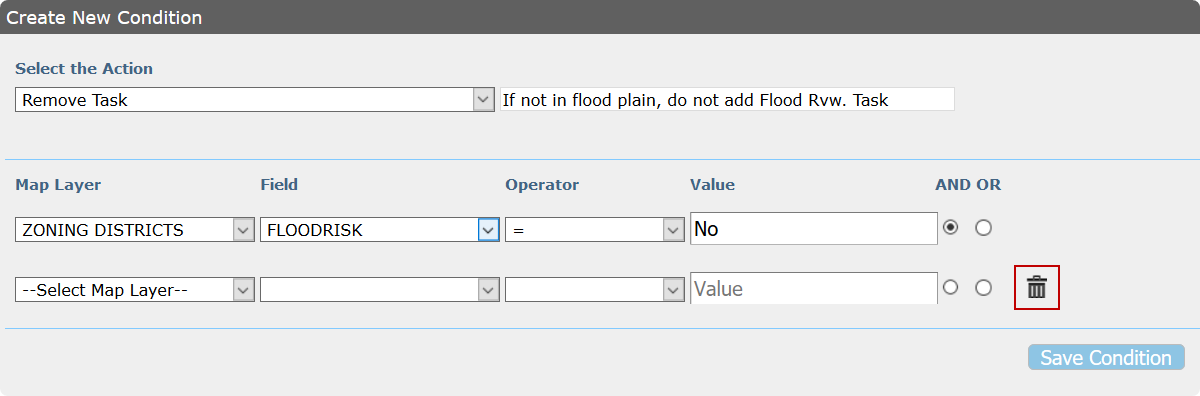 - Click the Delete the condition icon next to any extra map layers that you do not wish to keep.