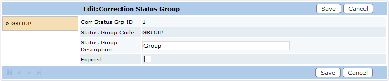 - Expired: This check box, visible only on the Edit:Correction Status Group panel, allows administrators to mark specific status groups as expired. The corresponding check box on the main Checklist Status Groups panel will also be selected.