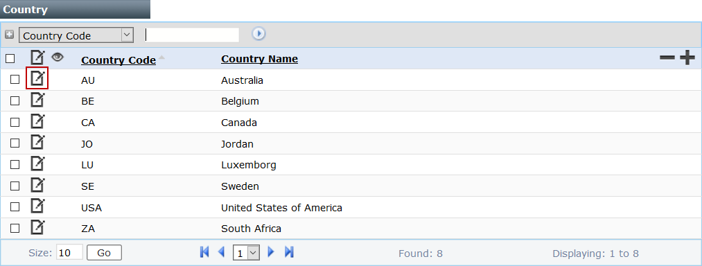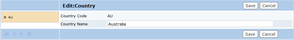 - On the Country panel, click Edit record next to the country code you want to edit.
