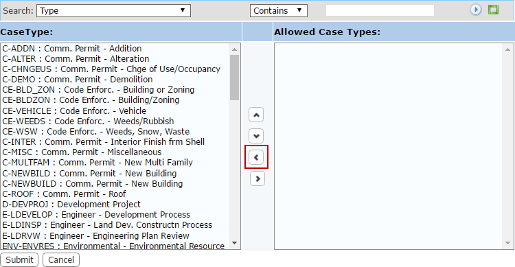 - Select items in the CaseType or Task field by clicking on them.