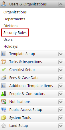 - Click Users & Organizations on the PLL Admin menu and select Security Roles.