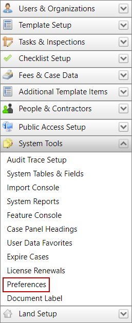 - Click System Tools on the PLL Admin menu panel and select Preferences.
