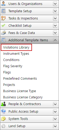 - Click Additional Template Items on the PLL Admin menu panel and select Violations Library.