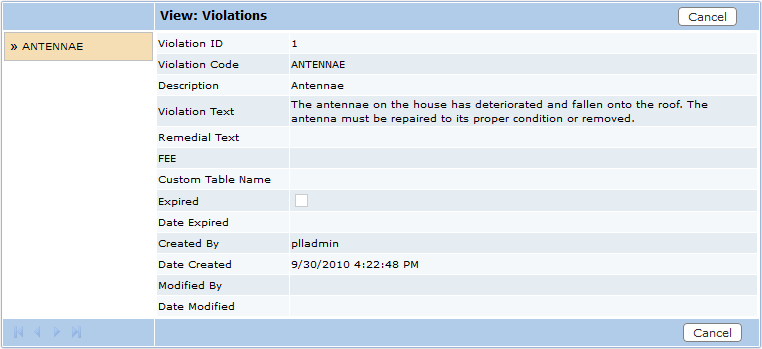 The View option allows you to see more detailed information about a violation code than is available on the main Violations panel.