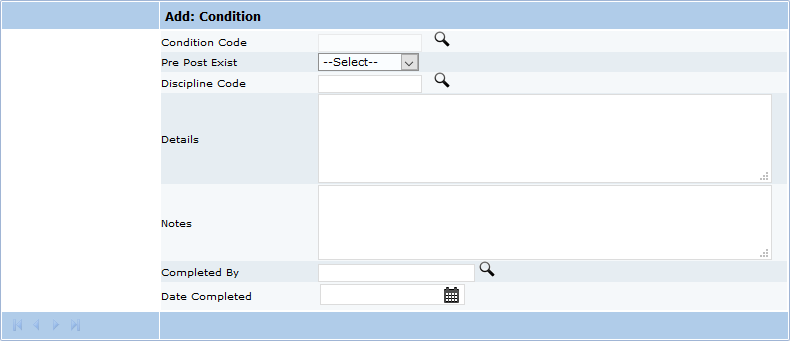 - Condition Code: Use the Lookup icon to select a condition code.