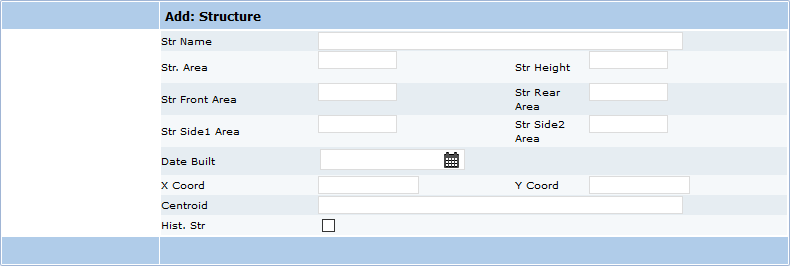 - Date Built: the date the structure was built. Enter a date manually, or use the calendar icon to select a date.