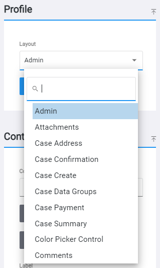 - On the Profile panel, use the Layout drop-down list to select the page, panel, or tool you want to customize.