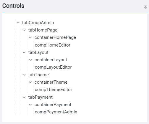 The Controls panel shows controls that are nested within the panels of the selected layout. Controls refer to the panels, buttons, fields, drop-down lists, combo boxes, calendars, check boxes, and option buttons that appear on a page.