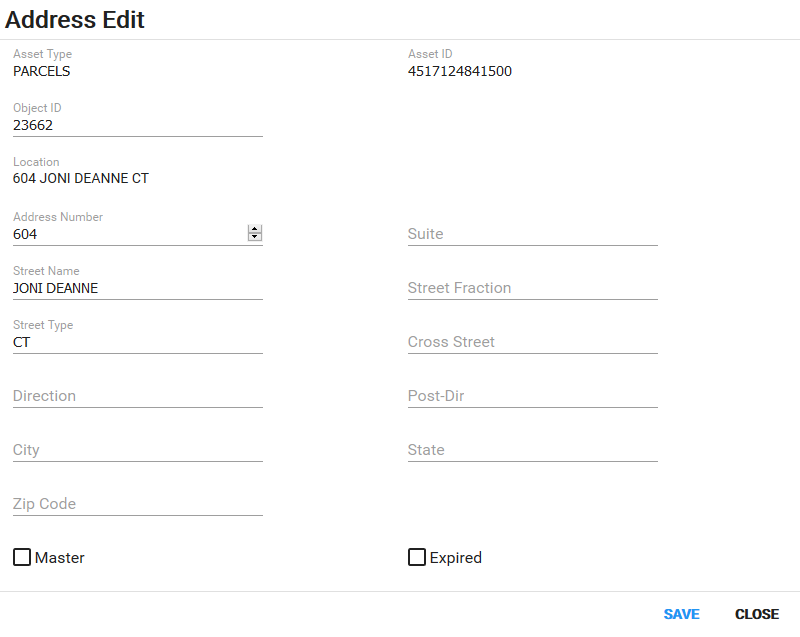 - Expired: Select the check box to designate this address as expired.