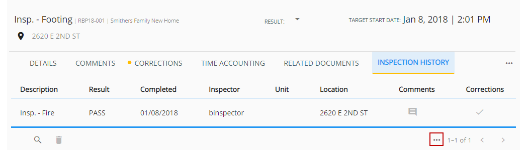 All related inspections and other activities appear.