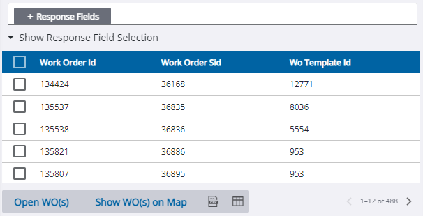 • OpenTap to open the selected work activities (e.g., open work orders for a Work Order query).