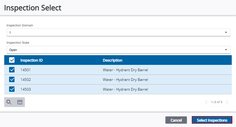 2. Select a state of Open, Canceled, or Closed from the Inspection State drop-down list to filter the inspections.