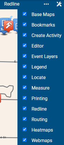 1. Select the check box next to the tools you want to always appear in the map toolbar.