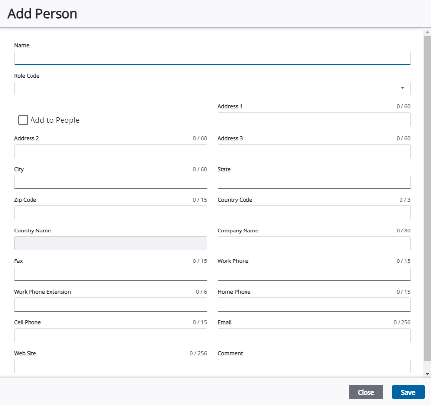 If you have entered information about a person not already saved in the database, select the Add To People check box to save that person's information to the database.