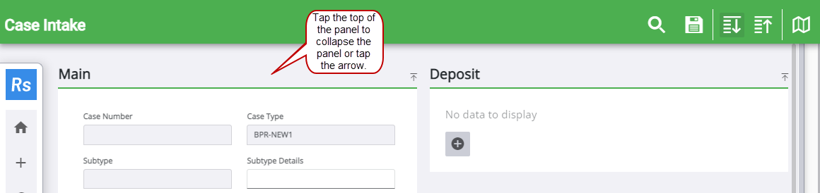 Collapse Panels on the Case Intake Page