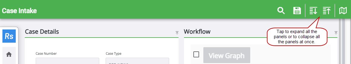 Each panel on the Case Intake page can be collapsed and expanded individually or all at once.