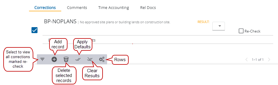• Result: Select the result for the correction from the drop-down list, such as if it passes or fails or is approved or should be resubmitted. The result codes available in the drop-down list vary depending on the correction.