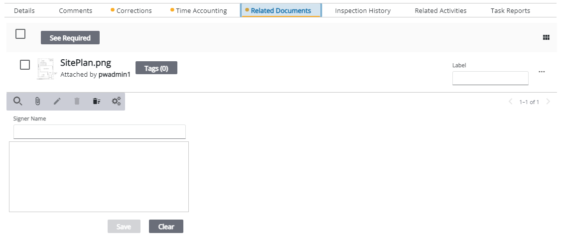 You can add, view, or remove attachments on specific tasks as well as capture a signature for inspections or apply labels to specific attachments.