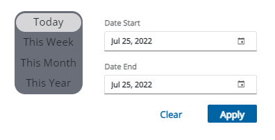 • Use the calendar icon next to the Date Start and Date End fields to select a custom time period. This shows any tasks with a target start date within the selected date range.