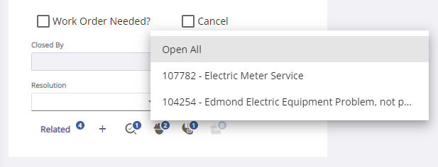 You can open a related work activity from the main panel of the work activity or from the Related Activities page.