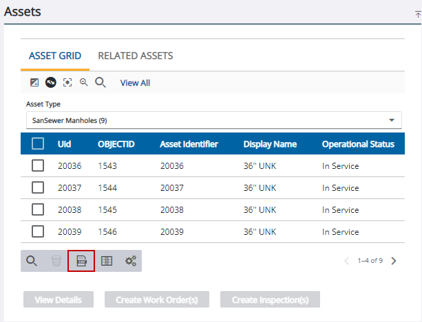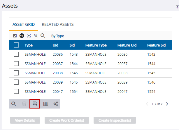Export assets selected from the map and displayed on the Assets panel to a .csv file.