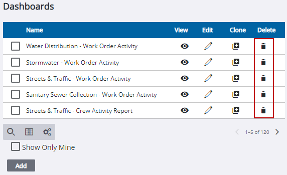 NOTE: The 10 most-recently-viewed dashboards display. To quickly switch between recently-viewed dashboards, see Switch Between Dashboards for more information.