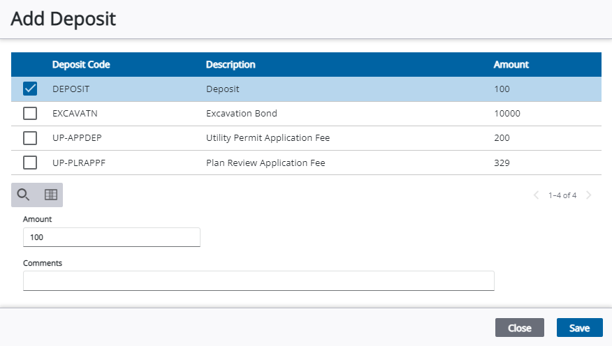 From here you can remove, view, search, and recalculate deposits. See Deposit in the Case Summary page for more information. See Deposit Panel Fields for an explanation of the Deposit panel fields.